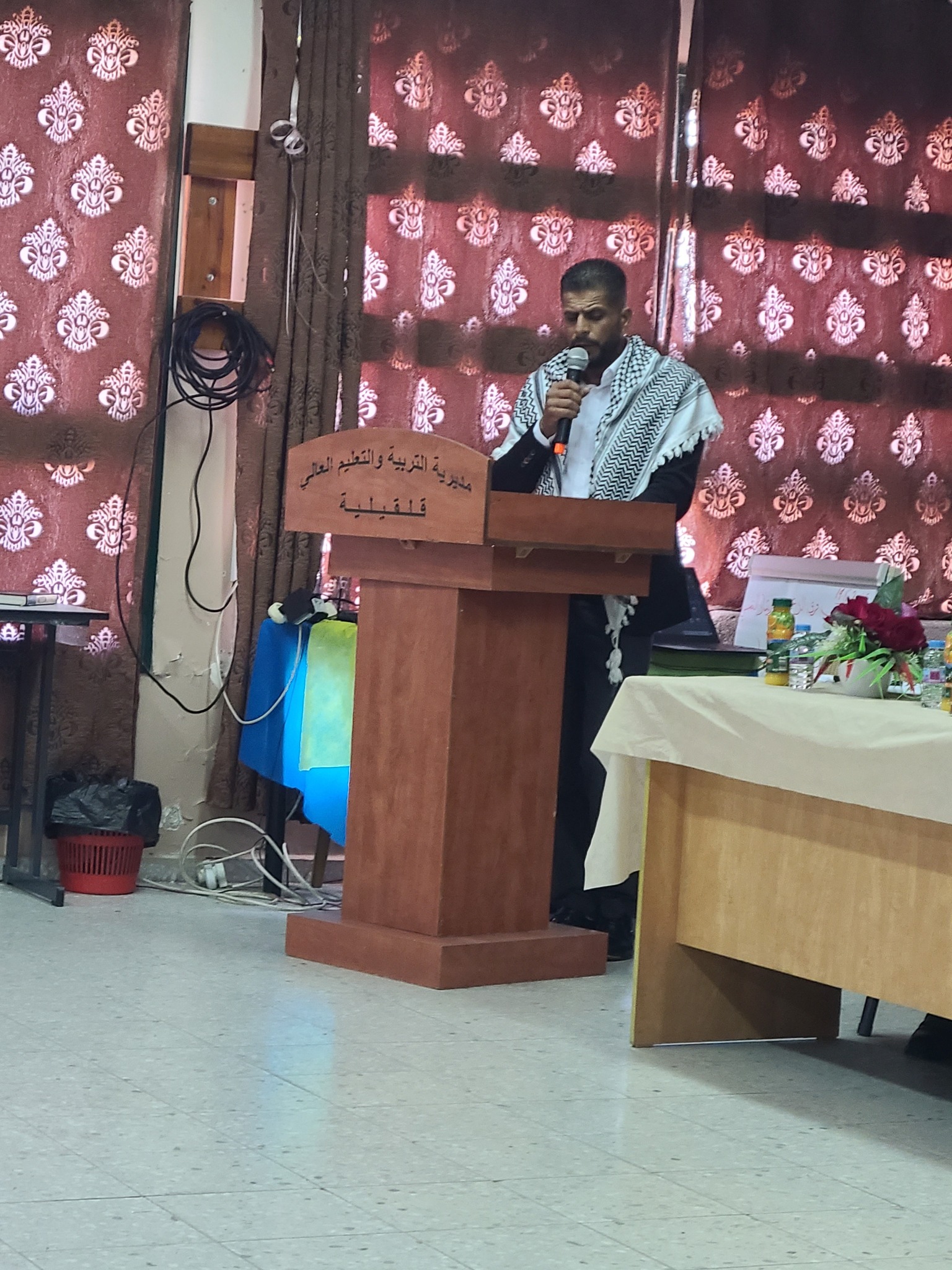 الأستاذ جرير السدة ممثلاً عن أمين سر اتحاد المعلمين الفلسطينيين – فرع قلقيلية