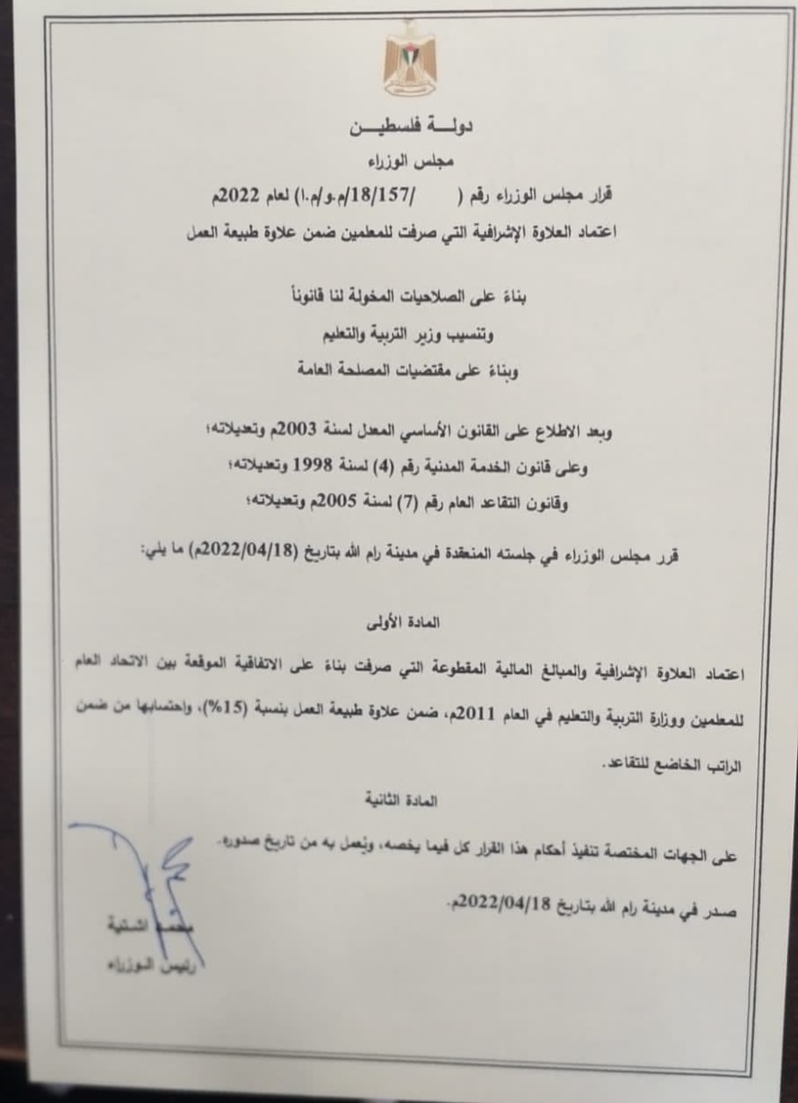بالإضافة الى تحويل العلاوة الإشرافية على طبيعة العمل بنسبة 15% والتي صدر قرار مجلس الوزراء باعتمادها هذا اليوم.
