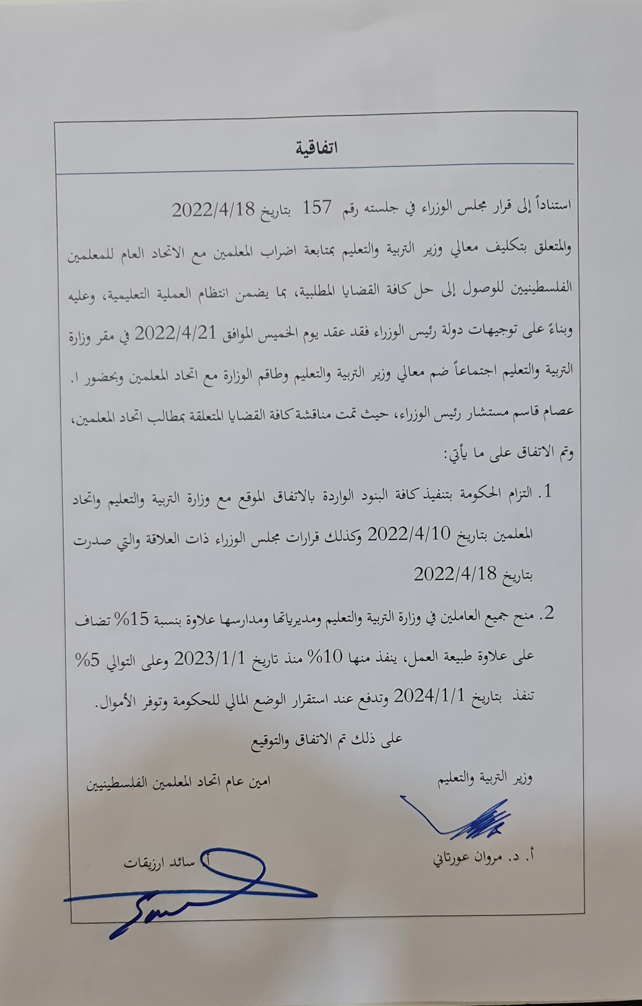 • زيادة طبيعة العمل بنسبة 15% لجميع العاملين في وزارة التربية والتعليم على النحو التالي: -