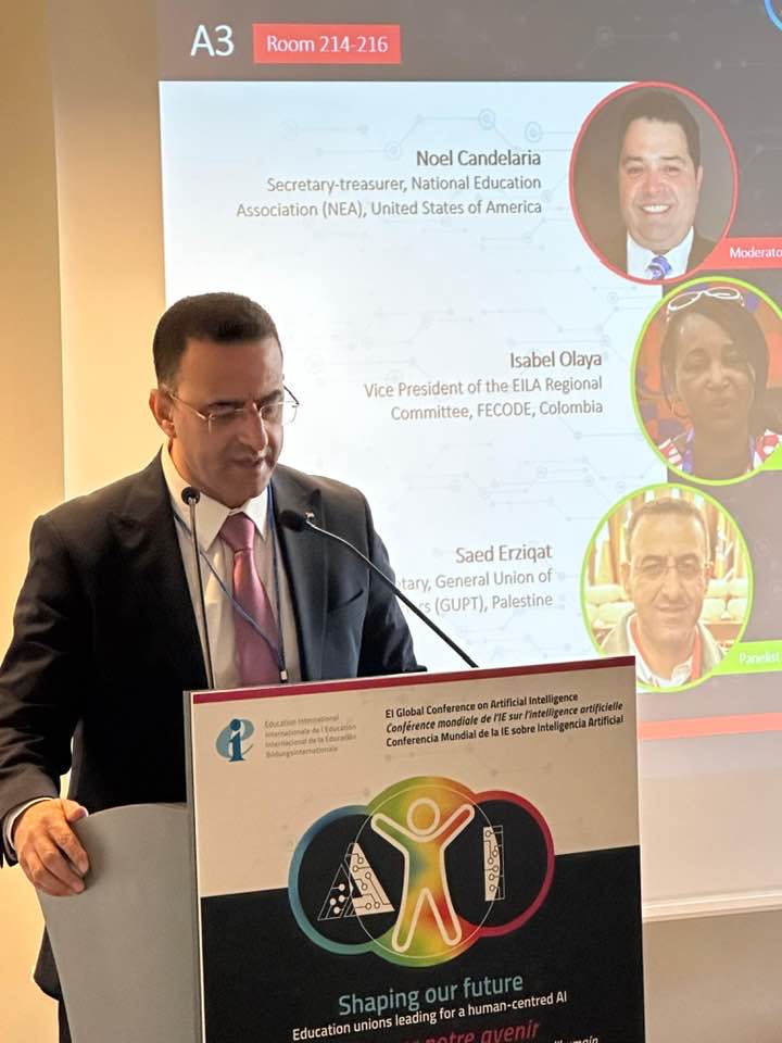 مشاركة اتحاد المعلمين الفلسطينيين في اجتماع المكتب التنفيذي للدولية للتربية في بروكسل والحديث عن اوضاع التعليم في فلسطين والتحديات التي يواجهها المعلمون يوميا وقضية الرواتب وحجز الاموال الفلسطينية والازمات الاقتصادية التي تسببها حكومة الاحتلال لشعبنا واهمية التضامن الدولي مع معلمينا في غزة والضفة والمشاركة ايضا في مؤتمر مستقبل الذكاء الصناعي في التعليم والتحديات حيث تم تقدمنا بورقة حول تصورات اتحاد المعلمين لمستقبل الذكاء الصناعي في التعليم في فلسطين بين التحديات والفرص والضوابط الاخلاقية لذلك وشاركنا في يوم التضامن الدولي مع فلسطين من خلال النشاط الذي اقامته سفارة دولة فلسطين في بروكسل وكل التقدير والاحترام لسفيرتنا الدكتورة امل جادو ولكل طاقم السفارة على هذه الفعالية الرائعه .