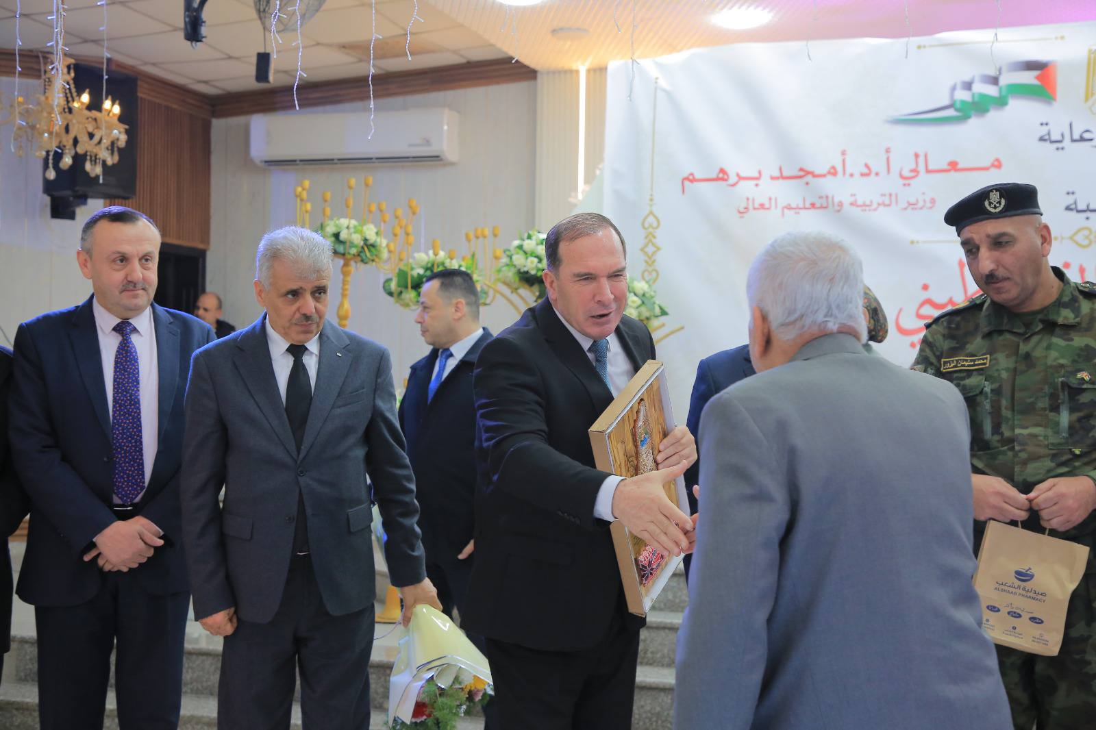 من جهته، عبّر الوزير أ. د. أمجد برهم عن شكره للمحافظ اللواء د. كميل على هذه المبادرة، قائلاً: “نقف اليوم في حضرتكم، نفتخر بأنكم زرعتم الأمل. فالمعلم الفلسطيني هو من صنع الطبيب والمحامي والمهندس، وهو صاحب رسالة إنماء ومحبة.”