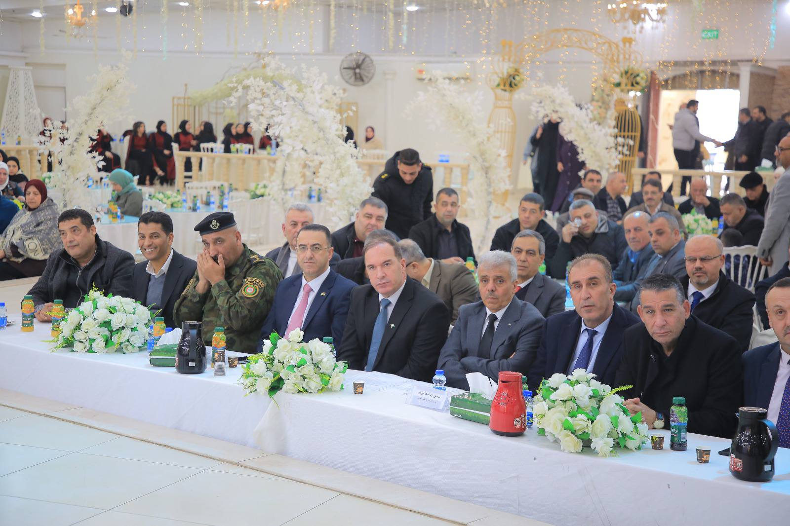 جاء التكريم بمشاركة قائد المنطقة العقيد محمد البزور ومديري الأجهزة الأمنية، و بحضور الأمين العام لاتحاد المعلمين سائد زريقات، والحاج غازي الحاج قاسم ممثلاً عن بلدية طولكرم، والغرفة التجارية، وممثلي المؤسسات الرسمية والأهلية، ورئيس جامعة فلسطين التقنية “خضوري” د. حسين شنك، وعصام القاسم امين سر مجلس أمناء جامعة خضوري إلى جانب ممثلي الجامعات، وجمعية رجال الأعمال، ومجلس أولياء الأمور الموحد، إضافة إلى الجهات المختصة و الداعمين من الشركات وأهل الخير.